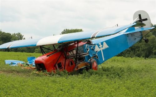 In 2007 at Geneseo , NY , WWI lost power shortly after take off. Ahead of the pilot was a river with trees on both banks. Aiming for the only treetop gap, the aircraft snagged a high branch with the starboard wing and went straight down from about 60 feet. He walked away combining equal parts of stick & rudder work with luck.