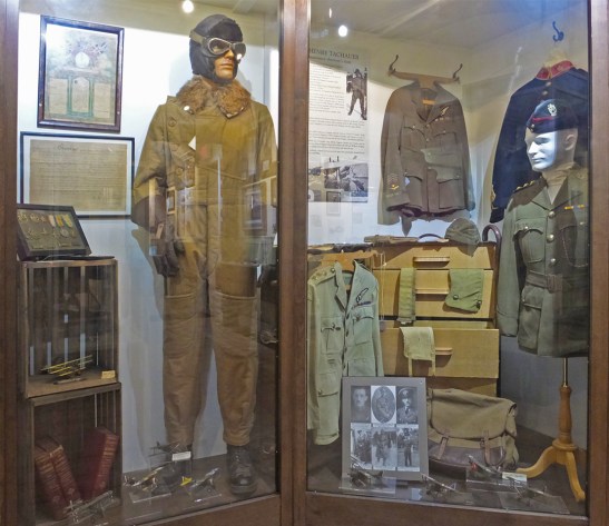 One of the uniform collections on display in the museum. this one belonged to a Lt Tachauer. Note the immaculate one piece Sidcot suit. This forerunner of modern flight jackets was highly prized by aircrew of both sides.